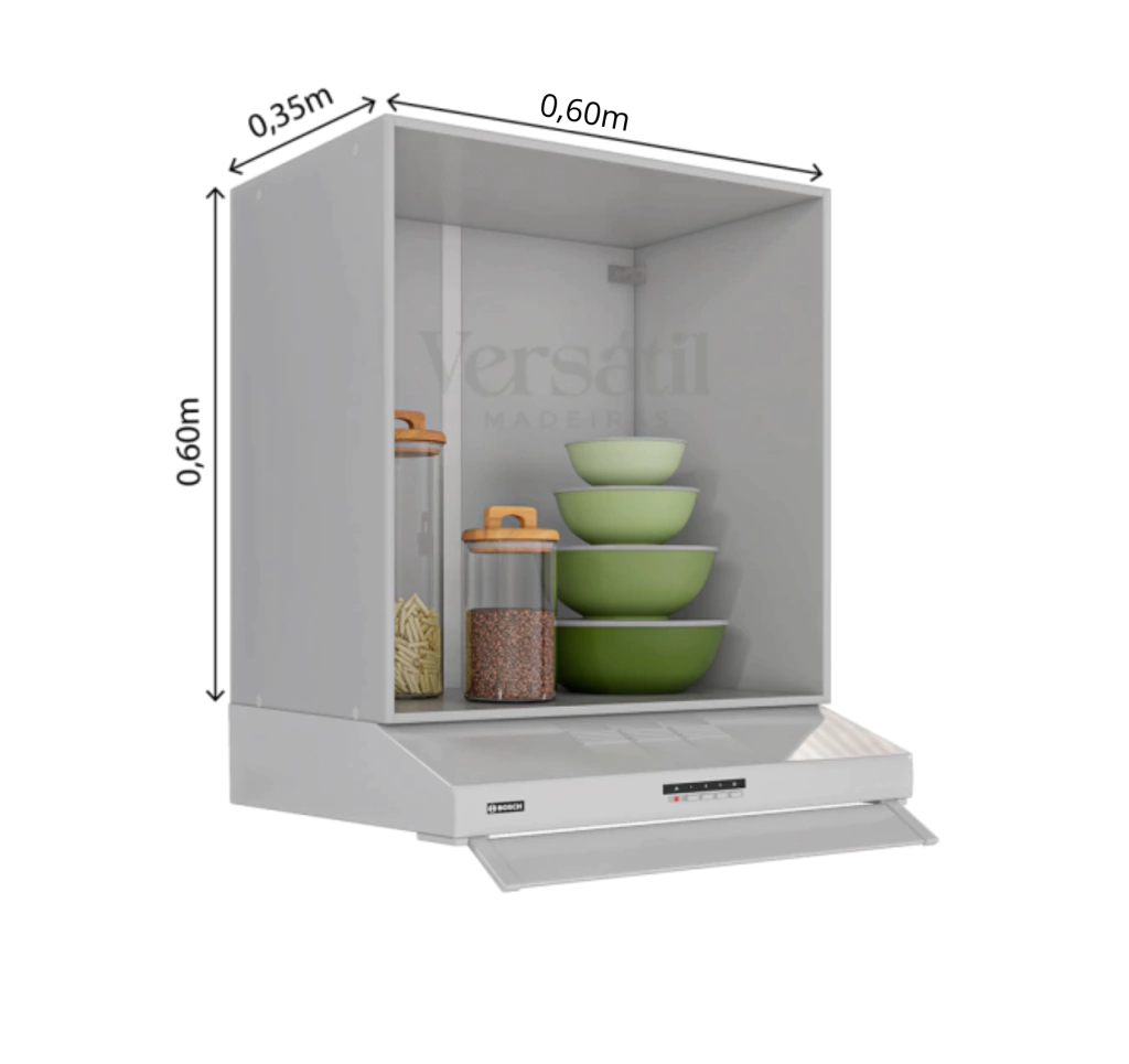 📏 Medidas do Produto: 0,60 m (L) x 0,60 m (A) x 0,35 m (P) – aproveitamento máximo do espaço acima do depurador.