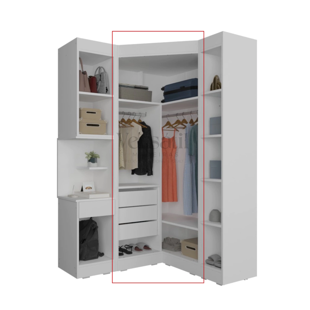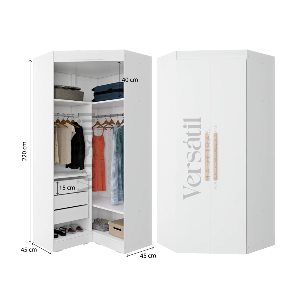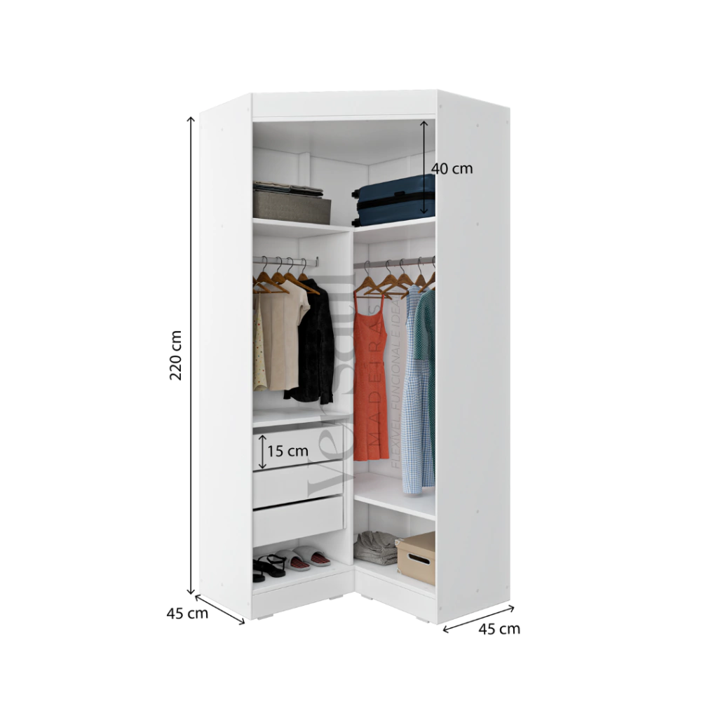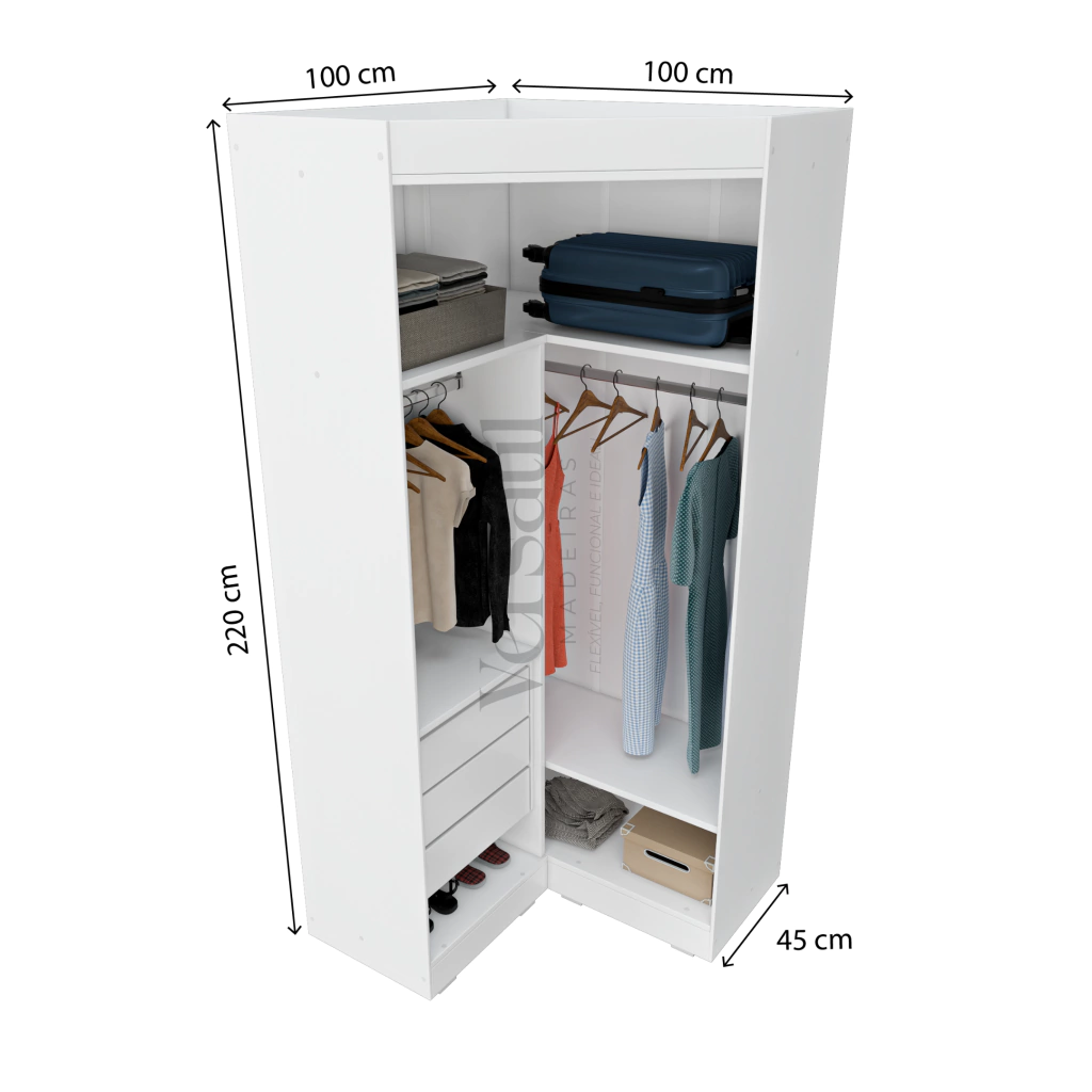 Descubra o Módulo Canto Oblíquo, projetado especialmente para otimizar espaços em L com 1m por 1m disponíveis. Este módulo é perfeito para quem busca funcionalidade sem abrir mão do estilo.