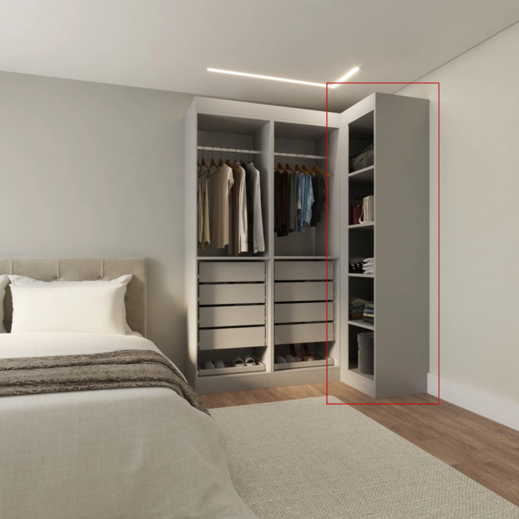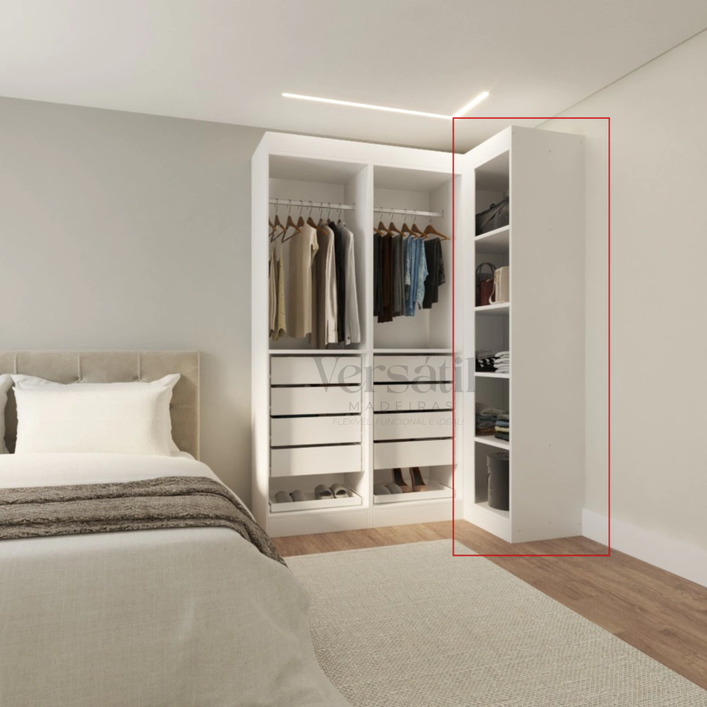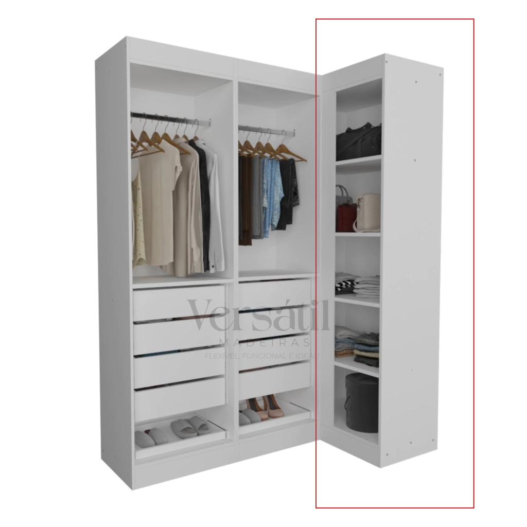 Apresentamos o Módulo Canto Prateleiras com 5 divisões e 4 prateleiras, a solução ideal para quem precisa otimizar espaços em casas em modelos de L. Com um design inteligente, este módulo é perfeito para qualquer ambiente, seja na sala, no quarto ou na cozinha.
