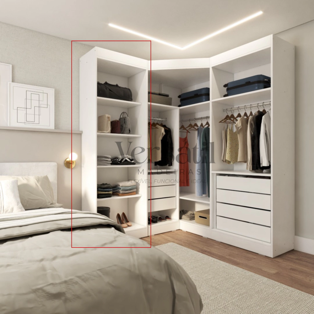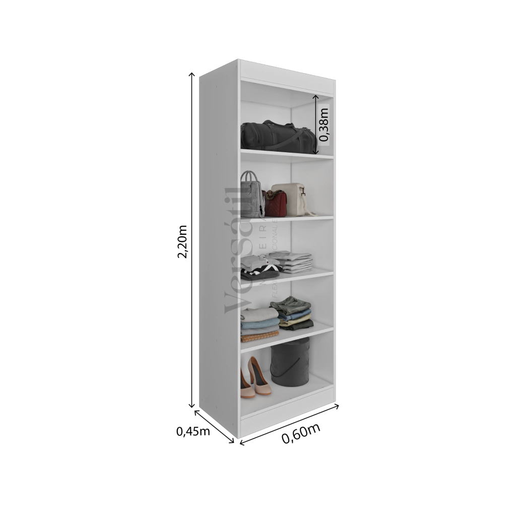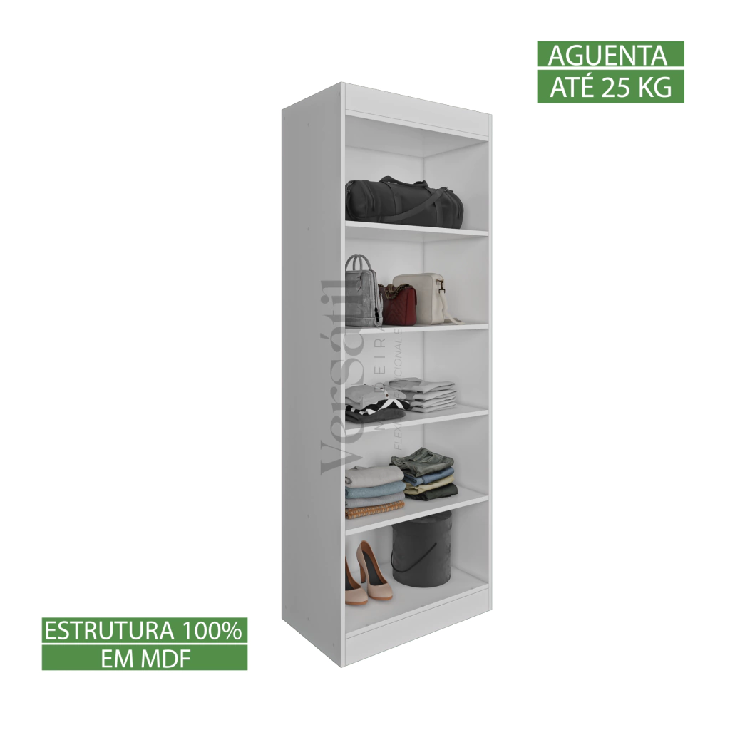 Conheça o Módulo Prateleiras 60cm, a solução ideal para quem busca organização e elegância em um único produto. Com 4 prateleiras espaçosas e um compartimento adicional que acompanha portas, este módulo é perfeito para otimizar seu espaço em qualquer cômodo da casa.