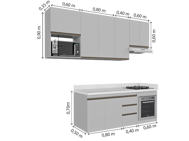 1 módulo aéreo 60cm para micro-ondas – 0,60cm X 0,90m X 0,35cm