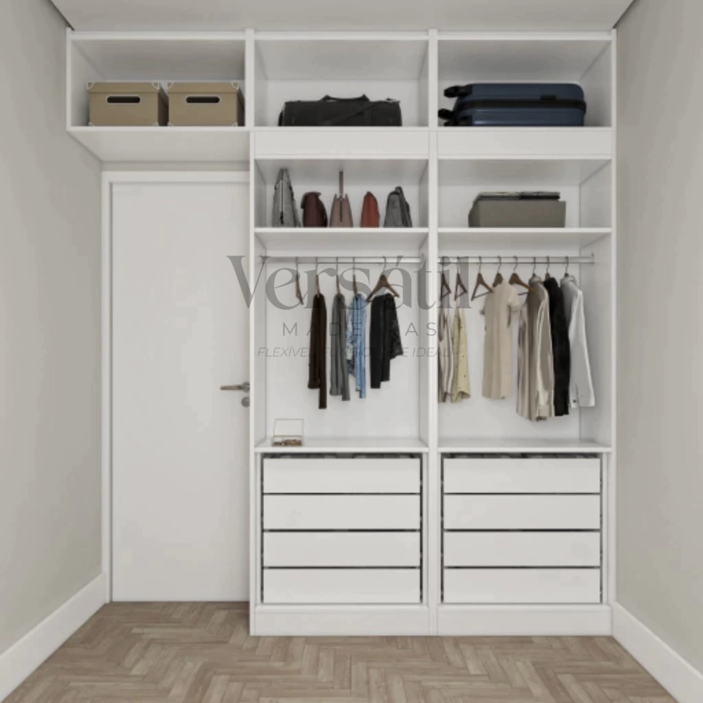 O Projeto Modulado da Versátil com 2 Módulos é perfeito para quem busca organização com sofisticação. Com gavetas amplas e maleiros superiores, entrega funcionalidade e beleza em um conjunto compacto e eficiente.